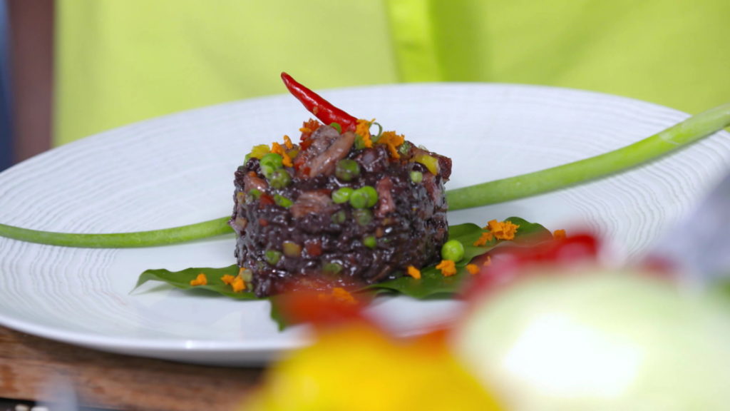 Le riz vénéré (noir) est originaire de Chine. On le trouve en Italie sous l’appellation riz vénéré. Il était réservé aux empereurs pour ses vertus aphrodisiaques et interdit aux femmes. Sa cuisson est plus longue qu’un riz normal (40 min).Pour faciliter sa cuisson il est conseillé de le mettre à macérer environs deux heures avant sa cuisson.