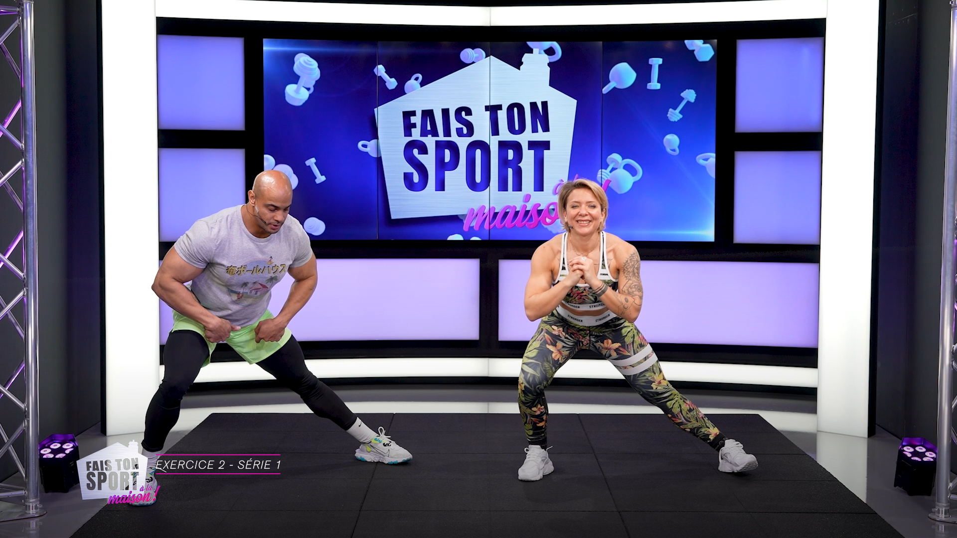 This episode of "Home Training" focuses on a muscle strengthening and mobility session, carefully designed to relax and energize the body. Guillaume and Sabrina start with a full warm-up, emphasizing movements for the neck, shoulders, and chest to release tension. Each exercise aims to improve movement range and posture, fostering a connection between the brain and body to prevent injuries. Through progressive rotations and stretches, the session stimulates joint mobility, especially in the knees and ankles. This comprehensive and nurturing approach is ideal for reconnecting with oneself while gently strengthening the body.